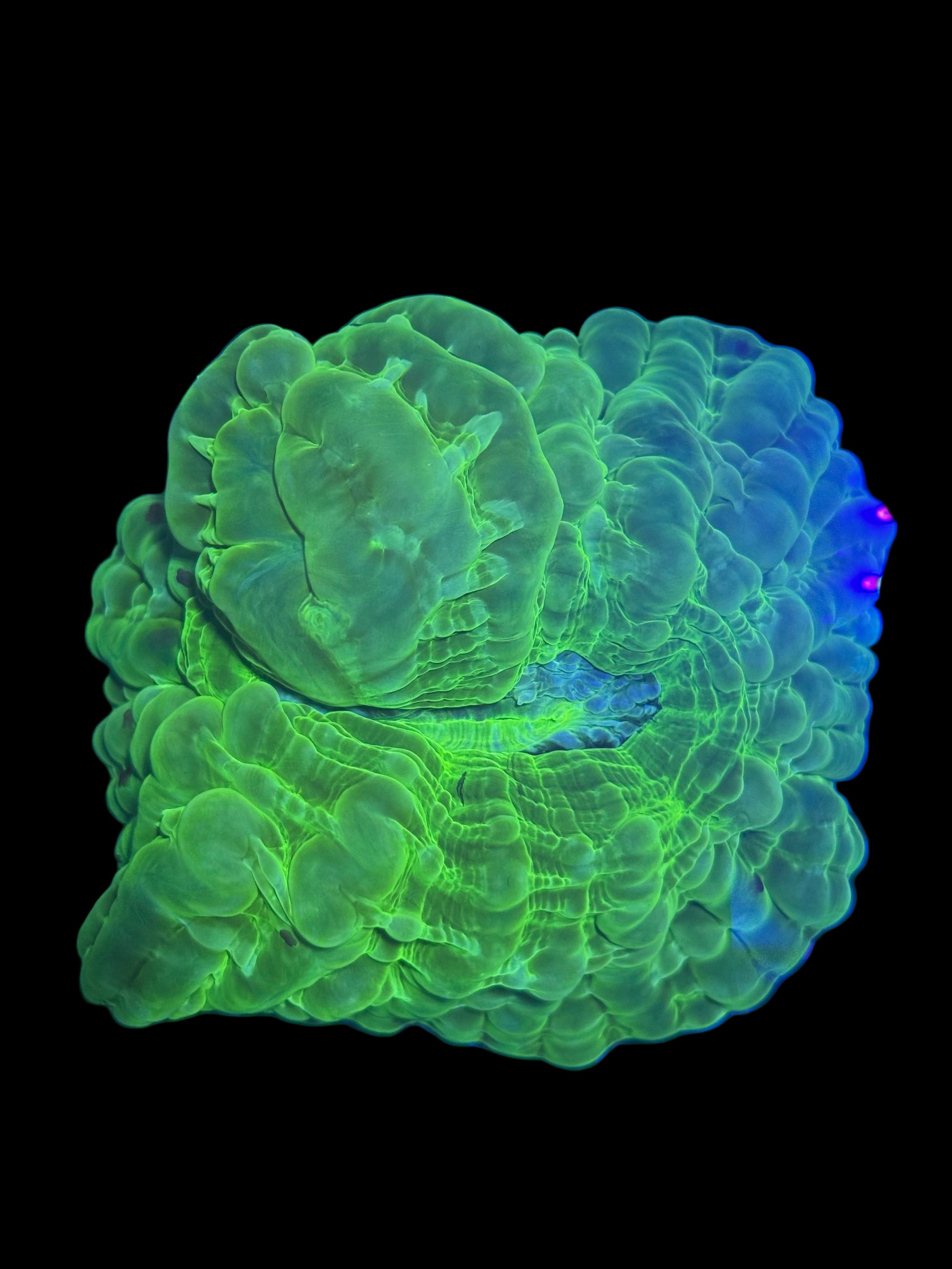 Cynarina corals, often called Button Corals, Doughnut Corals, or Cat’s Eye Corals (Cynarina lacrymalis), are large polyp stony (LPS) corals prized for their vibrant colors and fleshy, inflated appearance. They are generally hardy but more sensitive than Trachy corals, requiring careful placement and stable conditions.